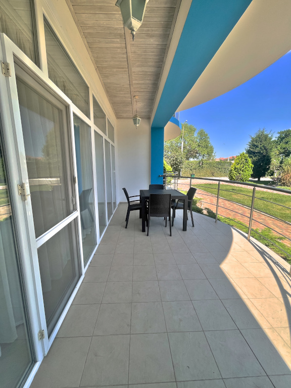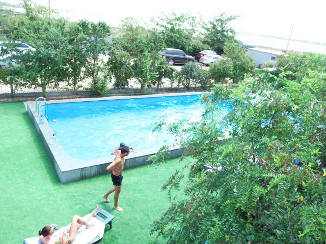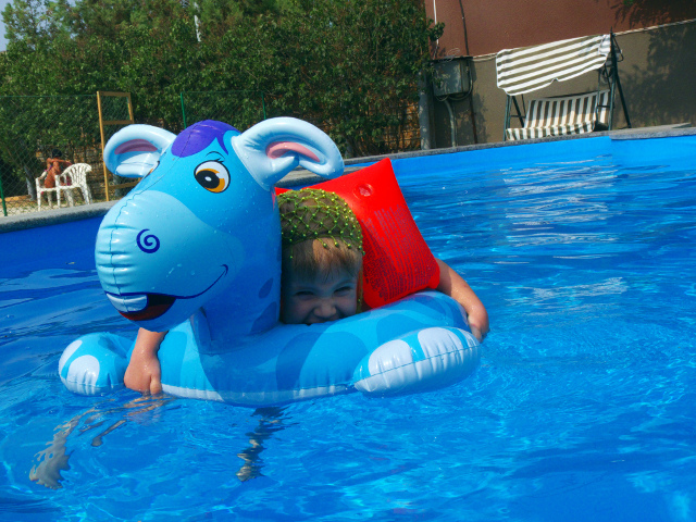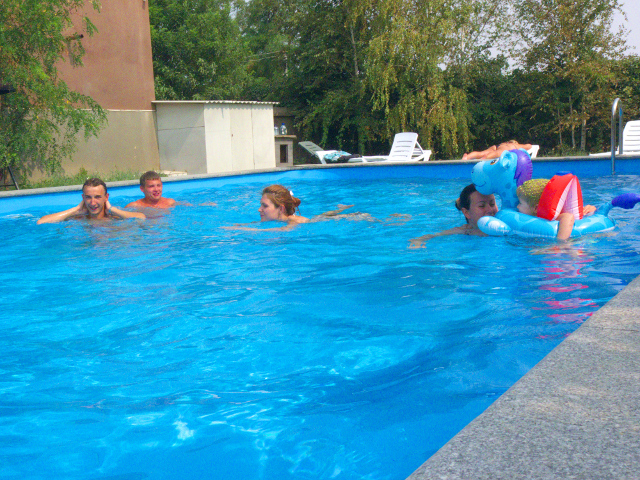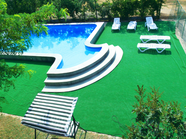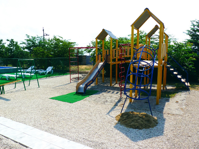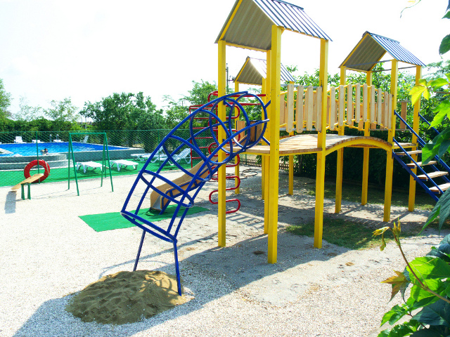 - открытый плавательный бассейн с морской водой, шезлонгами и качелями;